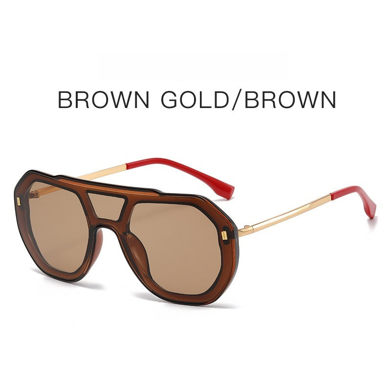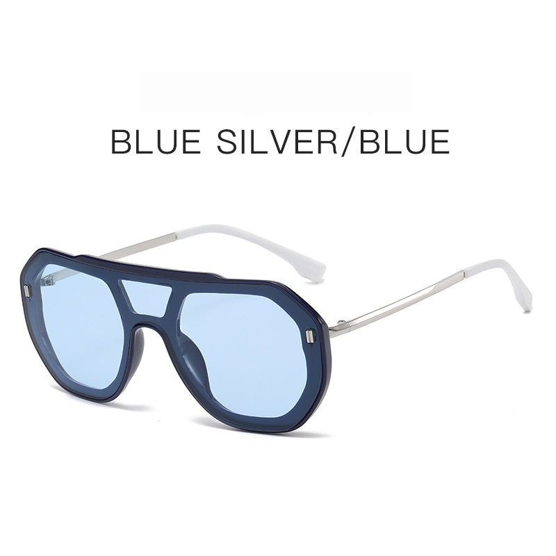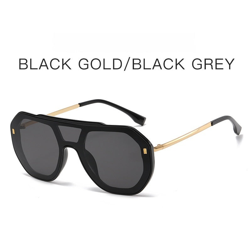 Large-frame Personalized Semi-metal One-piece Sunglasses For Men